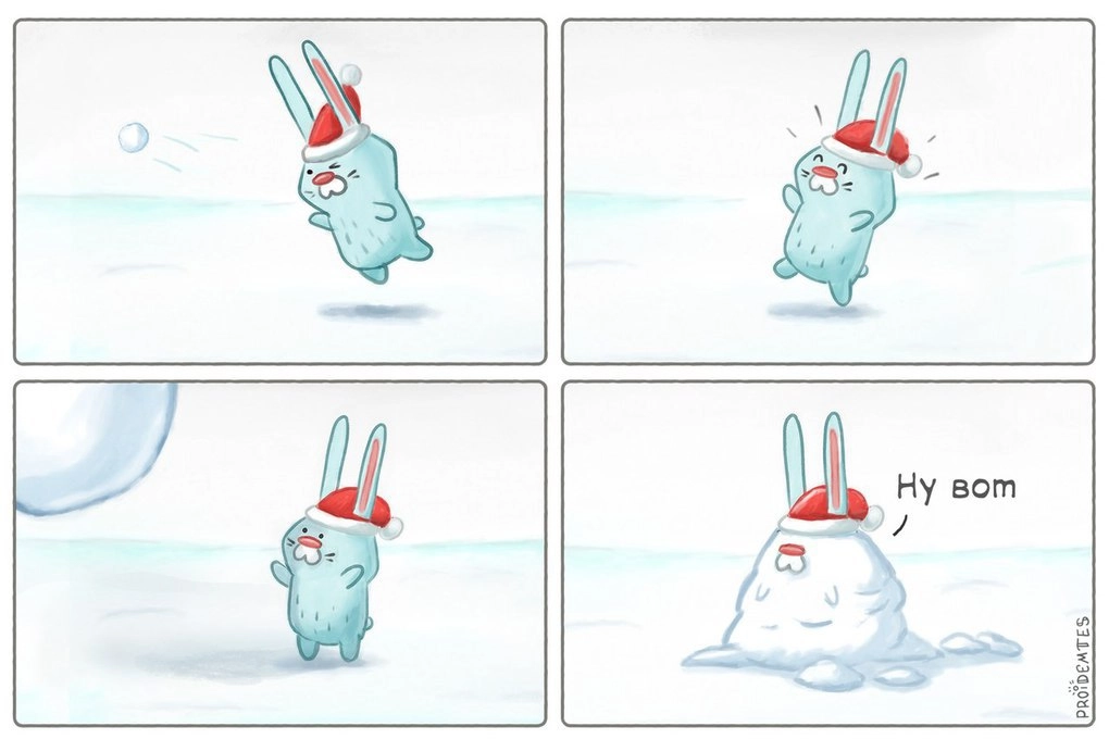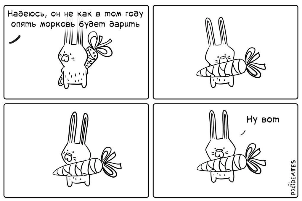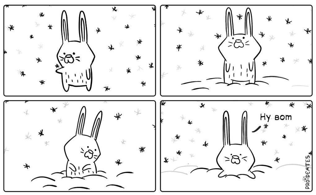 Комиксы нагляднее всего отображают всю абсурдность нашей жизни. Художники знают это и умело пользуются данным способом, чтобы донести свои мысли до человечества. Иллюстратор с псевдонимом Гражданин Пройдёмтес не первый раз привлекает внимание интернет-аудитории. Мы уже писали про его юмористическую классификацию комаров, а сейчас автор нарисовал ироничные комиксы о милом зайчике, который говорит «Ну вот», сталкиваясь с различными жизненными ситуациями, и этот возглас олицетворяет собой и разочарование, и принятие судьбы одновременно. Эти короткие смешные истории настолько актуальны, что вы обязательно узнаете в них себя.