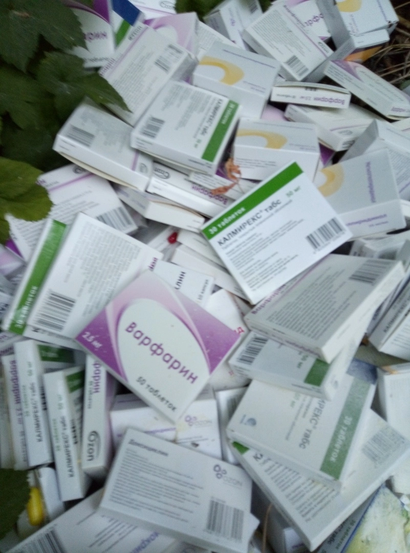 Несколько сотен коробок с лекарствами «Варфарин» и «Калмирекс» были обнаружены в районе улицы Мало-Луговой в городе Белебее. Фотографии выброшенных лекарств были опубликованы в Сети.
