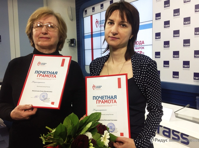 В ходе пресс-конференции сегодня наградили почетных доноров России. Среди них Елена Викентьева. Первый раз женщина пришла сдавать кровь, когда ей было 25 лет. Тогда девушку медики отправили обратно, сообщив, что она слишком худая для донорства.