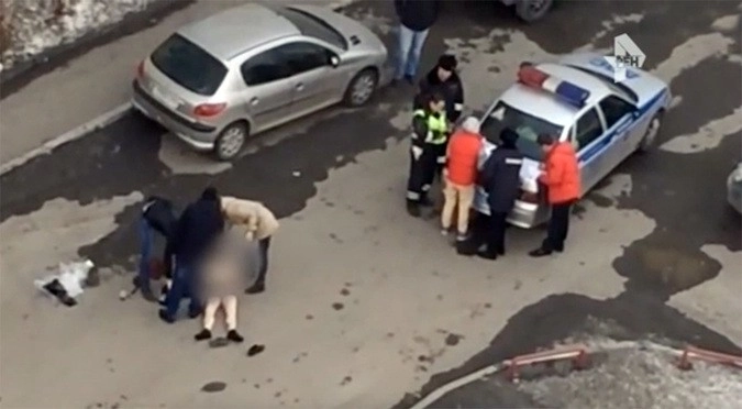 Жильцы дома, во двое которого разворачивалась трагедия, предпочли наблюдать за событиями в стороне. Кто-то даже начал снимать происходящее с балкона собственного дома, правда, уже после того, как случилось непоправимое. На кадрах, опубликованных в Сети, видно, как тело погибшего осматривают криминалисты. Отметим, что изначально мужчина был одет, одежду с него сняли прибывшие эксперты. На записи слышны детские голоса - в нескольких метрах от тела расположена детская площадка. При этом, буквально в нескольких шагах от умершего мужчины проходят жильцы дома, в том числе школьники.
