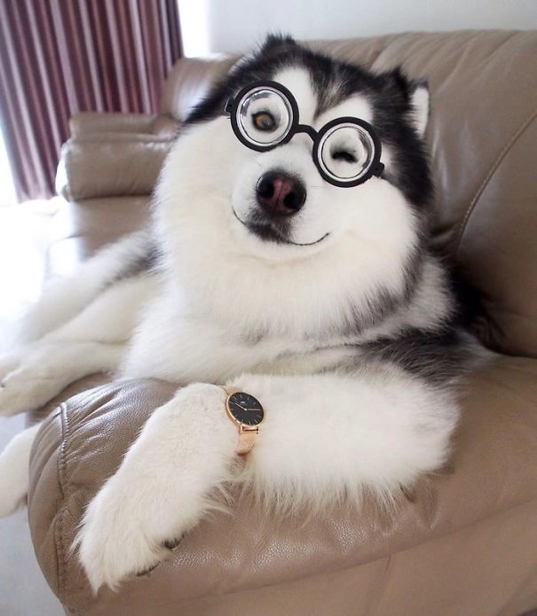 Кстати, говорят, что просмотр фотографий с этой очаровательной разноглазой хаски прибавляет несколько лет жизни.
