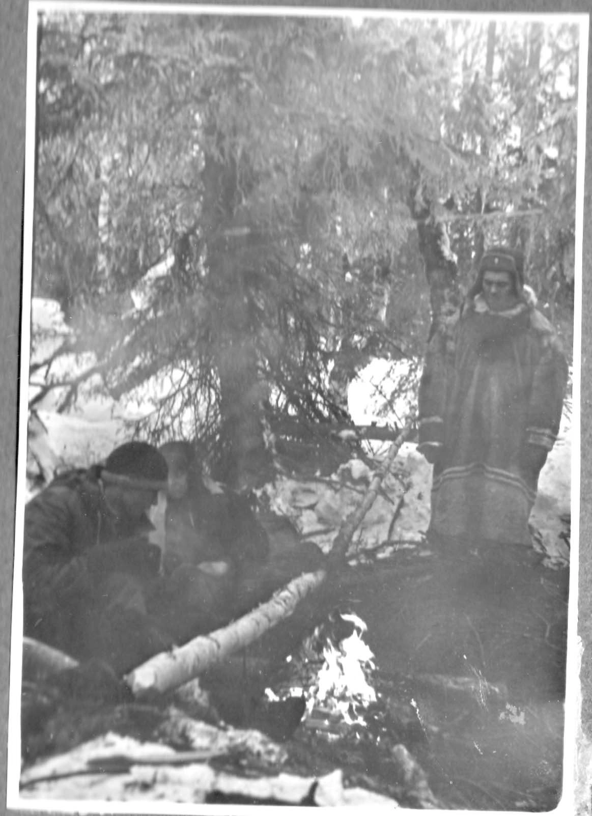 Вот, к примеру, фотография солдата в одежде манси. То, что это именно солдат видно по форменной зимней шапке-ушанке. Однако солдат одет в малицу и традиционные для манси рукавицы. Снимок был сделан во время поисковых работ, скорее всего в конце февраля 1959 года.