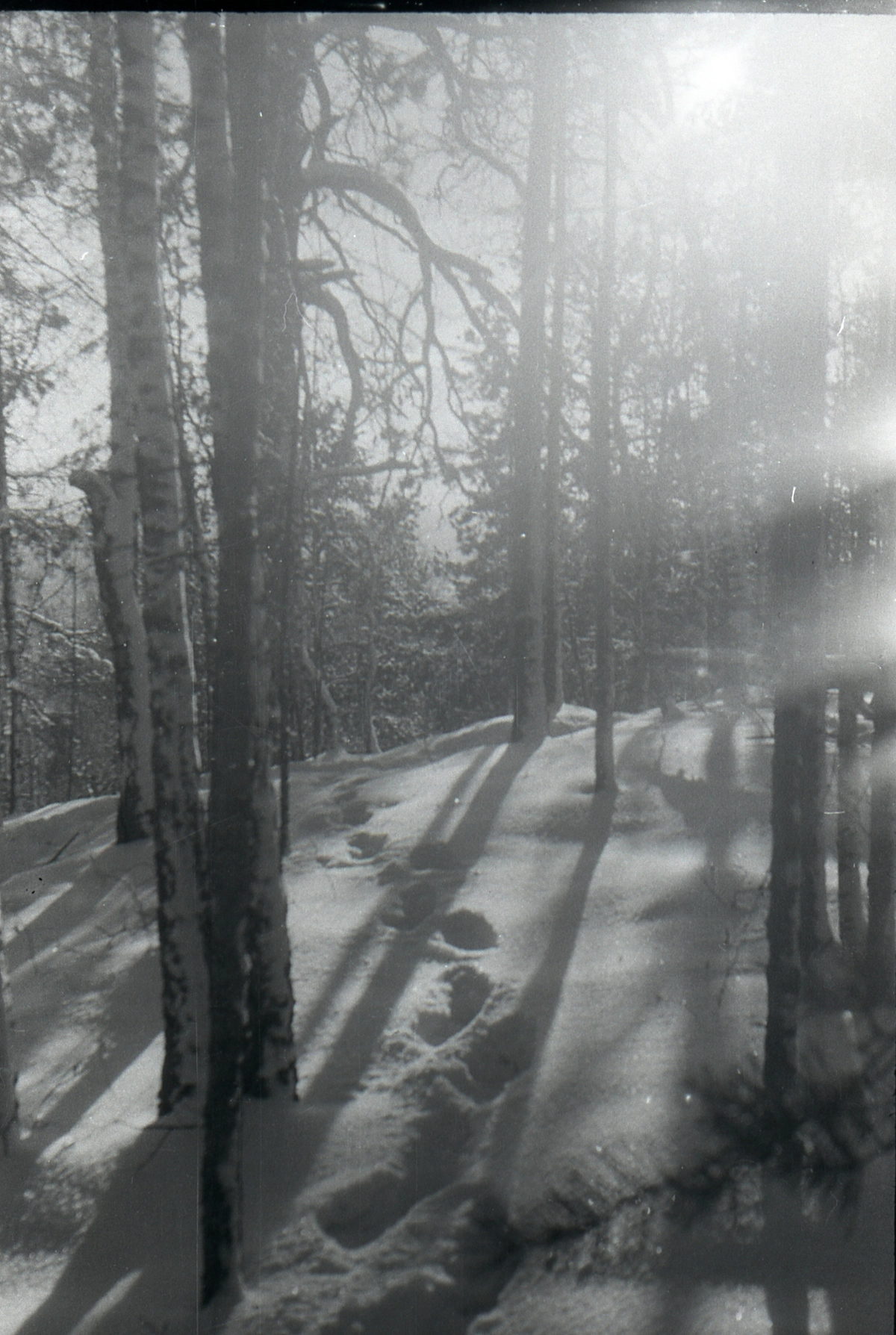 Следы ног в лесу. Снимок ранее мне не попадался. Откуда он я точно не знаю.