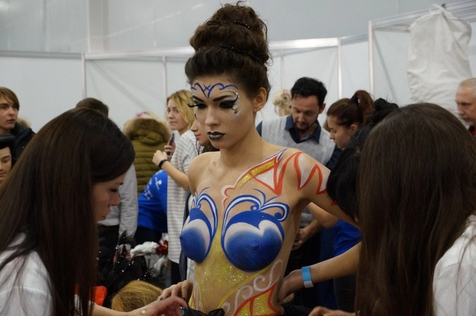 Те, кто не первый раз посещает InterCHARM, до последнего ждали один из наиболее интересных и пикантных конкурсов, часто проводимых в рамках выставки — конкурс боди-арта. В отличии от прошлых выставок, на этот раз он оказался не столь масштабным, но это не помешало всего лишь нескольким моделям приковать к себе всеобщее внимание. Рисунки на обнаженном женском теле, без всякого сомненья, будут притягивать его к себе всегда.
