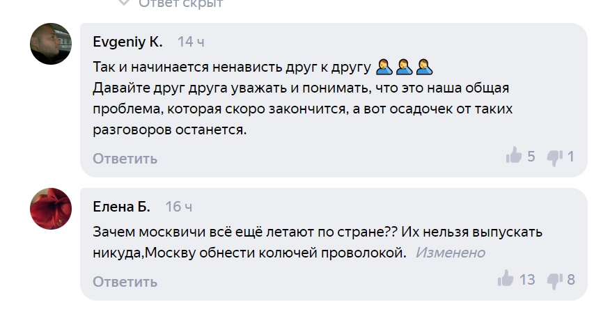 В Сети мнения по поводу необходимости этой меры разделились. Некоторые считают, что Москву давно нужно было закрыть на выезд, это бы помогло сдержать распространение вируса по всей территории России.