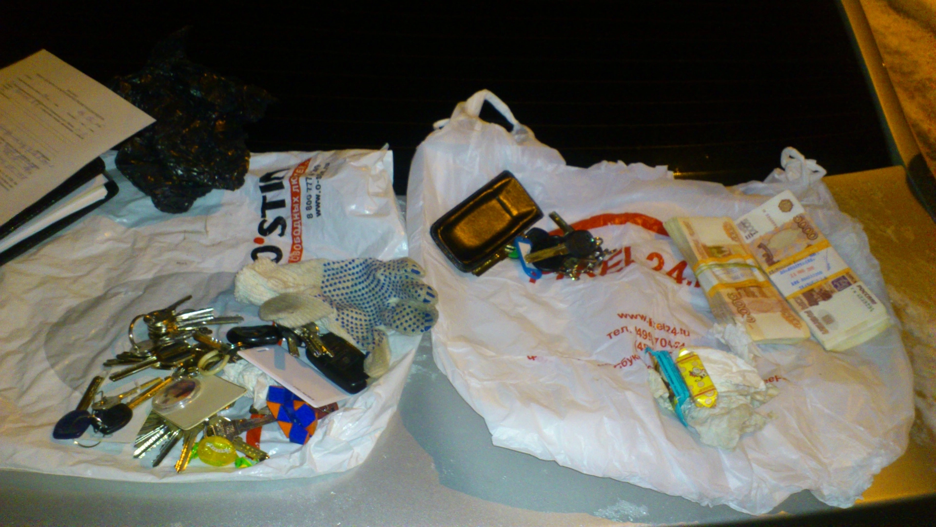 В ходе проведения обыска в коттеджном доме задержанного, который располагается в г. Пушкино Московской области, в больших количествах были изъяты предметы и ценности, похищенные при совершении аналогичных преступлений, а также денежные средства в рублях и валюте разных стран на общую сумму более 16 миллионов рублей. Также сыщики обнаружили большое количество отмычек, ключей, монтировок, офисных бейджей и магнитных ключей, использовавшихся при совершении преступлений.