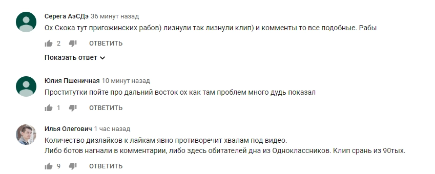 Не обошлось и без негативных комментариев под самим роликом «Любэ».