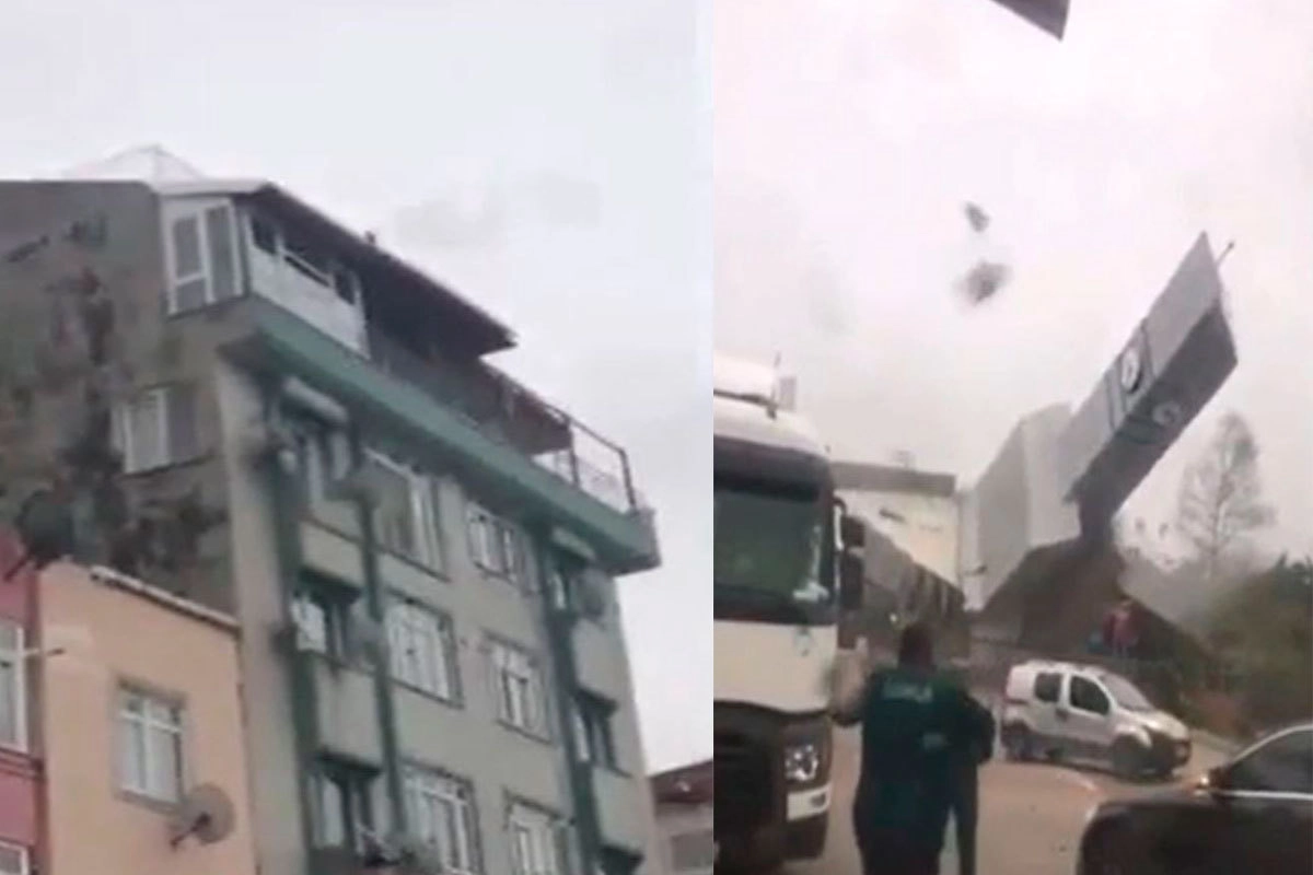 Сильный ветер переворачивает машины, обрывает линии электропередач и сносит крыши зданий.