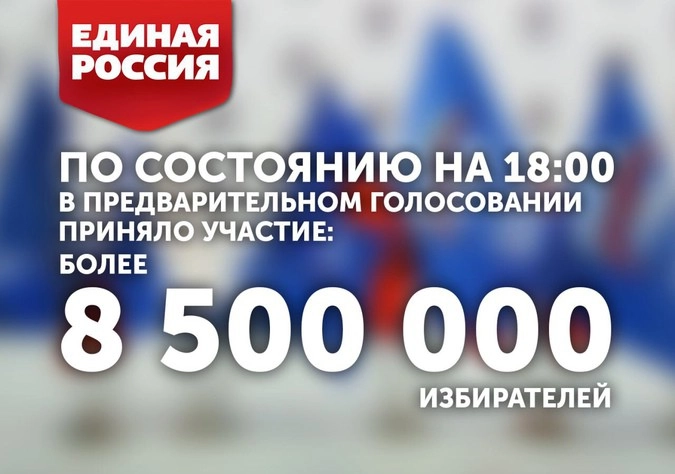 Предварительное голосование «Единой России» заинтересовало более восьми с половиной миллиона россиян: именно такое количество граждан проголосовало на праймериз по состоянию на 18:00.
