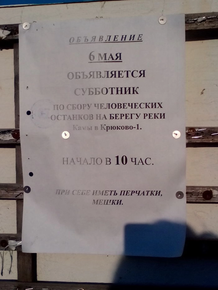Объявление о субботнике по уборке человеческих останков шокировало Рунет