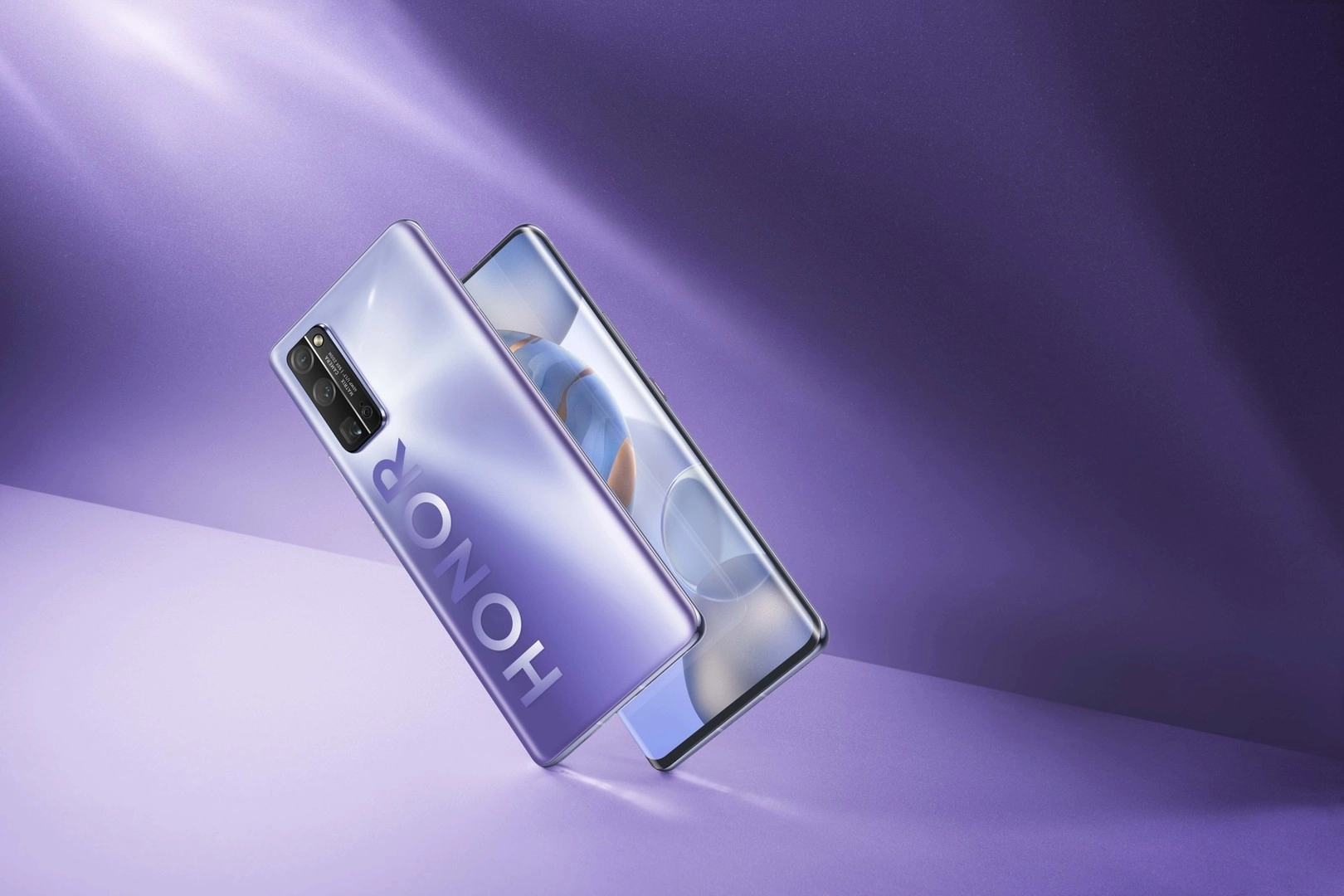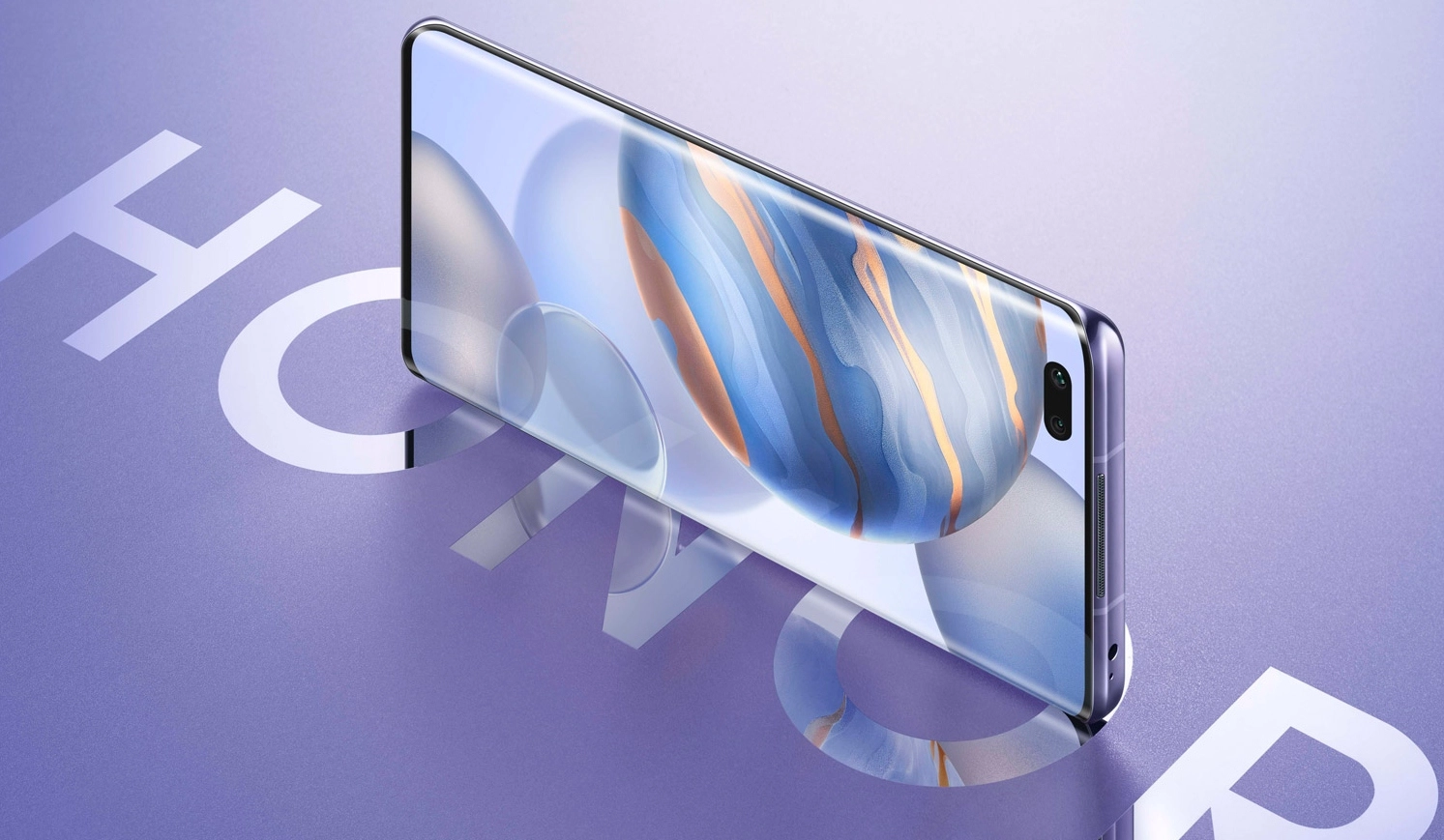 В компании уделили особое внимание дизайну смартфона, Honor 30 Pro+ выглядит очень красиво и необычно. В России устройство будет продаваться в двух расцветках — черная и серебристо-сиреневая. У нас на обзоре последняя версия, которая смотрится наиболее выигрышно. В этом цвете компания экспериментирует с собственным логотипом Honor, который написан крупными буквами и занимает треть от площади тыльной стороны. Расположен он в горизонтальной плоскости вместе с модулем основной камеры.