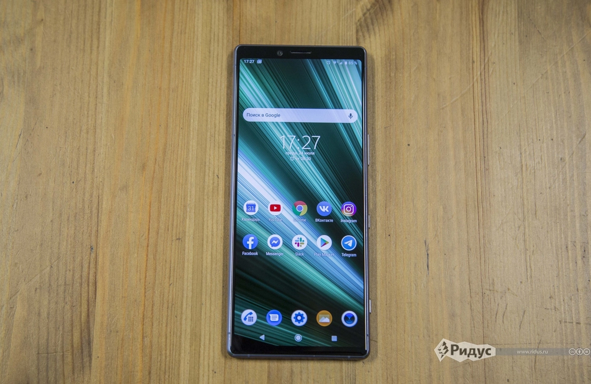 Xperia 1 стал первым флагманом Sony без логотипа на передней панели. Возможно, потому что лепить его попросту некуда — рамки вокруг экрана сведены к минимуму.