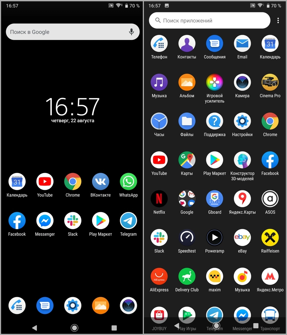 Xperia 1 работает под управлением Android 9.0, поверх установлена оболочка Sony. Она получила сдержанное оформление и хорошо сочетается со стандартными элементами системы.