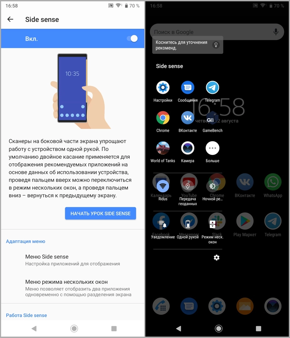 Есть тут и свои «фишки». Например, двойной тап по изогнутым краям экрана вызывает меню рекомендованных приложений. Также нажатием на грань активируется камера, правда, для этого удобнее использовать аппаратную кнопку.
