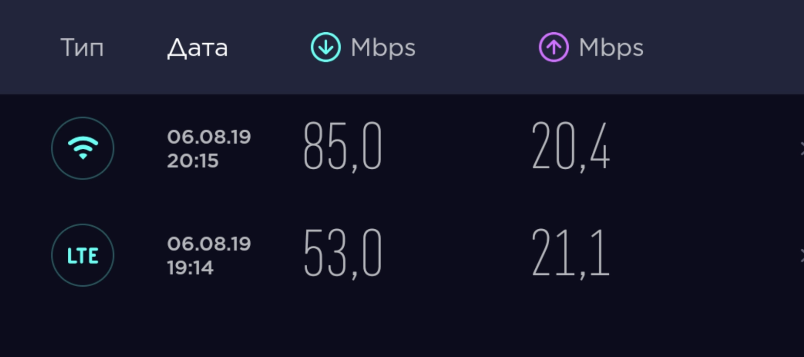 За время тестирования смартфон исправно ловил сеть. Скорость передачи данных высокая как по Wi-Fi, так и по LTE.