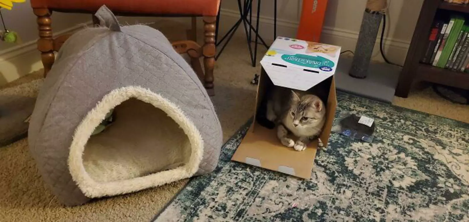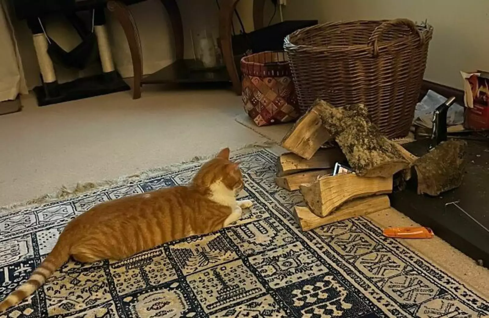 «Мама оборудовала нашей кошке свой отдельный телеуголок со смартфоном и обложила его поленьями. Это так круто, что я хочу себе такой же».