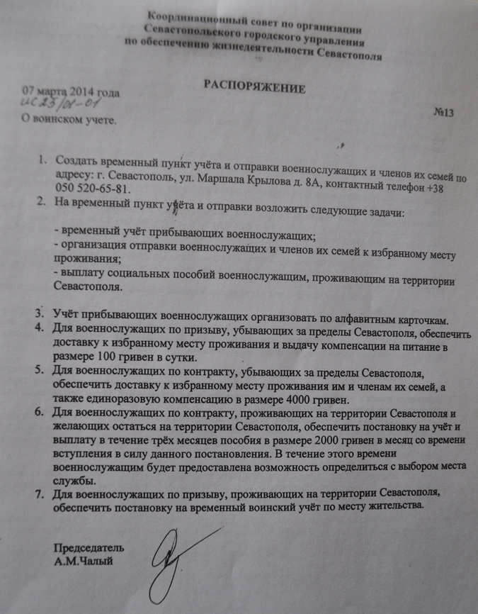 Украинские военнослужащие становятся на временный воинский учет в Севастополе. Соответствующие распоряжение дал мер города Алексей Чалый.