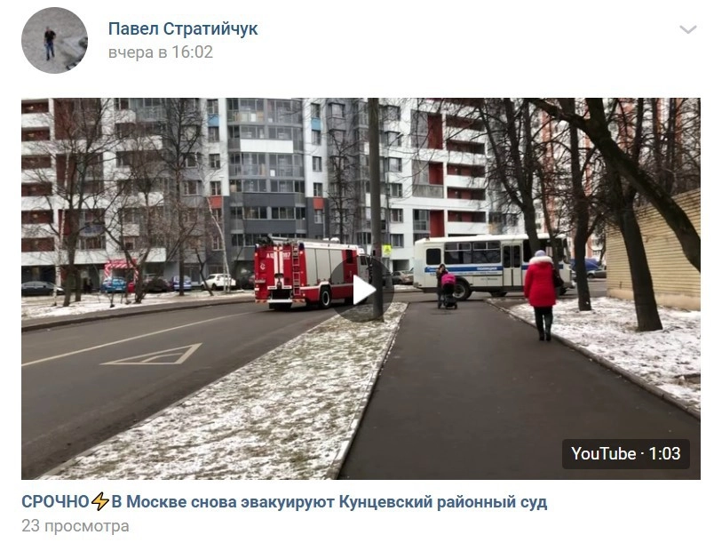 Напомним, 28 ноября в Москве и Санкт-Петербурге прошли массовые эвакуации зданий судов.