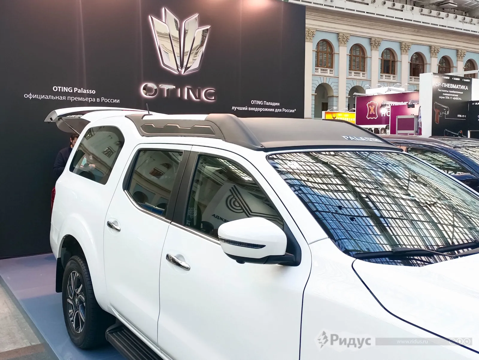 Семнадцатого октября на международной выставке «ORЁLEXPO 2024», проходящей в московском Гостином дворе, состоялась российская премьера рамного внедорожника OTING Palasso. Автомобиль стал первым в России представителем сегмента пикап-хардтопов (пикап с закрытым кузовом в заводском исполнении) и продолжателем российской линейки внедорожников, произведённых на заводе Nissan в Китае, начатой уже ставшим знаменитым OTING «Паладин».