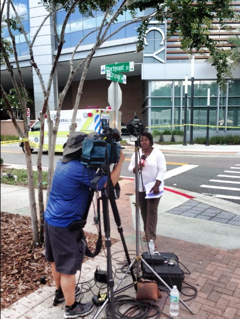 Ситуация в Орландо на 13:00 по местному времени. «Первые 18 минут объезд на машине перекрытого квартала и перевод звонков на местное радио, последние пять минут пешком по перекрытым для автотранспорта улицам», — поясняет Золотенко.
