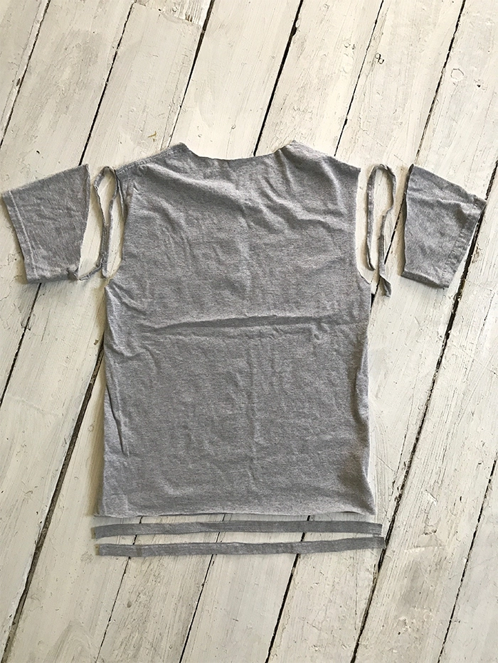 Разрежьте свою хлопковую «жертву» так, как показано на фотографии. Перфекционизм и ровные края приветствуются, но совсем не обязательны.