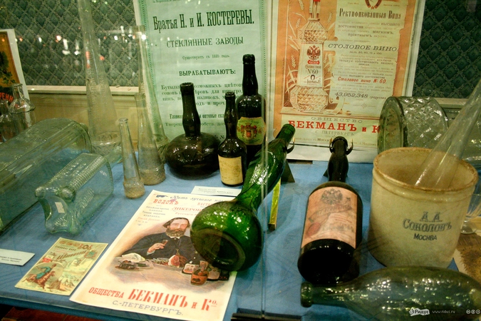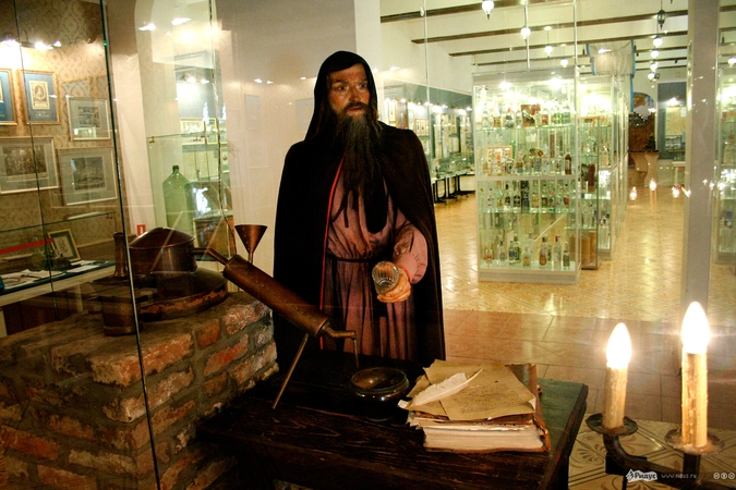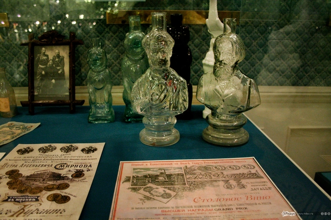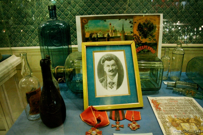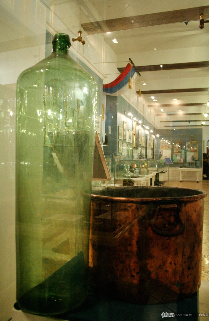 Отдельный стенд посвящен первопроходцам дела Менделеева — смешивания спирта с водой в определенных пропорциях до крепости 40 градусов. Производителю оставалось лишь подсыпать для аромата в стандартный напиток всяких травушек и прочей «колдуй-бабы», и именно с этим лучше всего справились известные теперь на весь мир Смирновы.