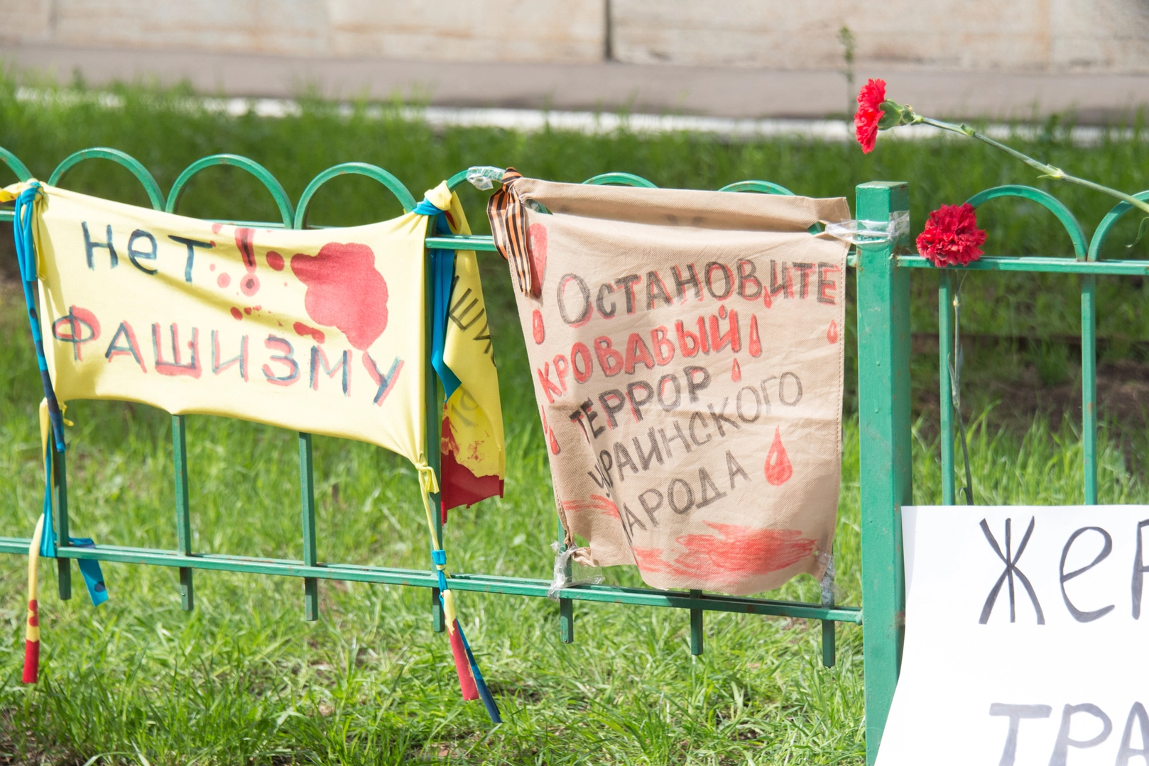 Кроме того, неизвестные активисты вывесили напротив украинского посольства огромный баннер с надписью «Одесса 2 мая. Не забудем. Не простим!», почтив таким образом память зверски убитых год назад в Одессе граждан Украины, несогласных с политикой Киева.