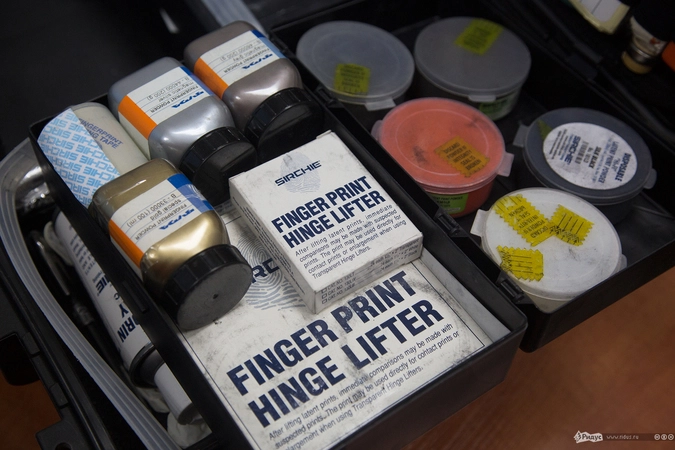 Найденные отпечатки эксперт тут же переносит на дактилоскопическую плёнку, которая впоследствии направляется на экспертизу...