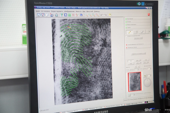В лаборатории криминалист сканирует полученные следы и при помощи автоматизированной дактилоскопической системы (АДИС) сверят их с всероссийской базой дактилоскопических карт.
