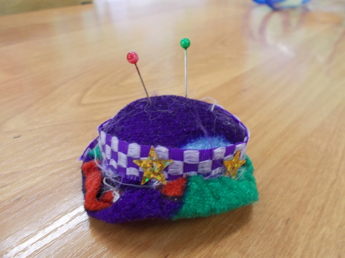 Другой день у Наталии Николаевны более насыщенный – со второй половины дня начинается кружок в МАОУ СОШ № 11. Там ребята уже не валяют, а шьют игрушки. Так, один мальчик сшил держатель для карандашей – забавного щенка с лапками, в которые нужно вставлять карандаш. Другая девочка шьёт золотую рыбку. Третья ещё не определилась с выбором игрушки и внимательно изучает книгу со схемами и выкройками.