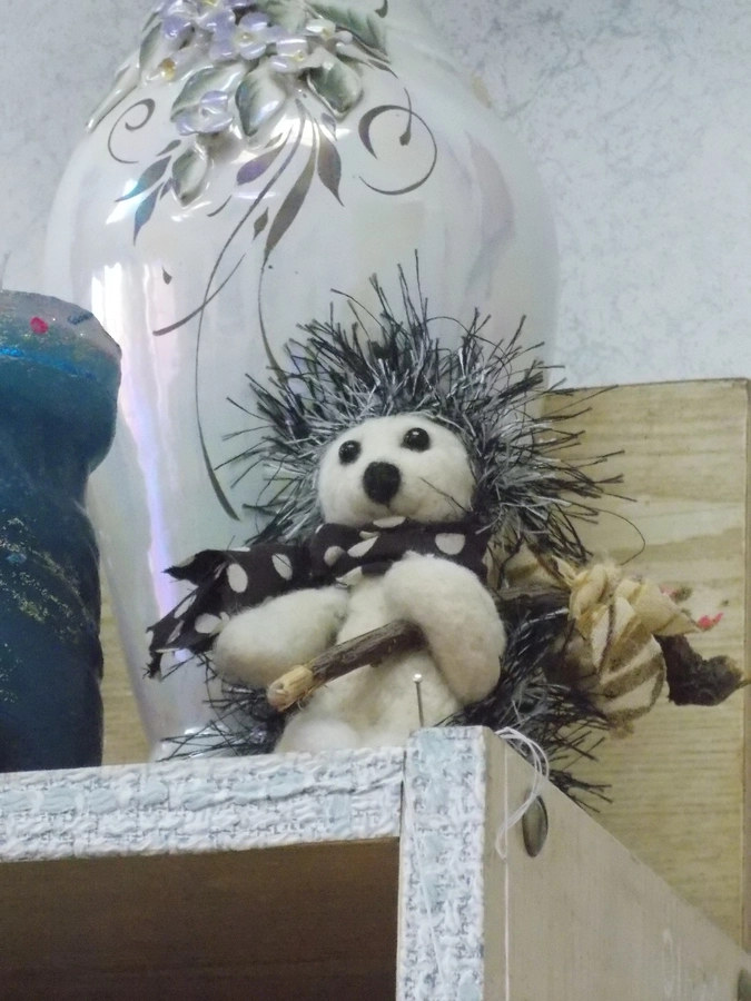 После окончания кружка Наталия Николаевна переходит в другой кабинет и занятия начинаются уже у 2-го и 3-го классов. Тут шьют Царевну-Лягушку. У неё ещё нет косы и короны, но она уже очаровательна! А другая девочка занимается тем же, чем и дети из лицея № 6 – валяет снежинку. За всеми действиями очень интересно наблюдать – особенно, когда ещё неготовую снежинку фильцуют на щётке, чтобы придать ей законченный вид.