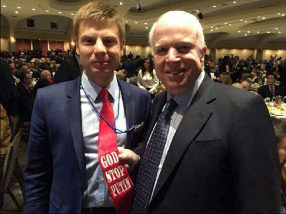 При этом на опубликованных в соцсети фото видно, что Гончаренко одет в джинсы, куртку и белую футболку, с изображением Бориса Немцова и надписью «Герои не умирают» на украинском языке.