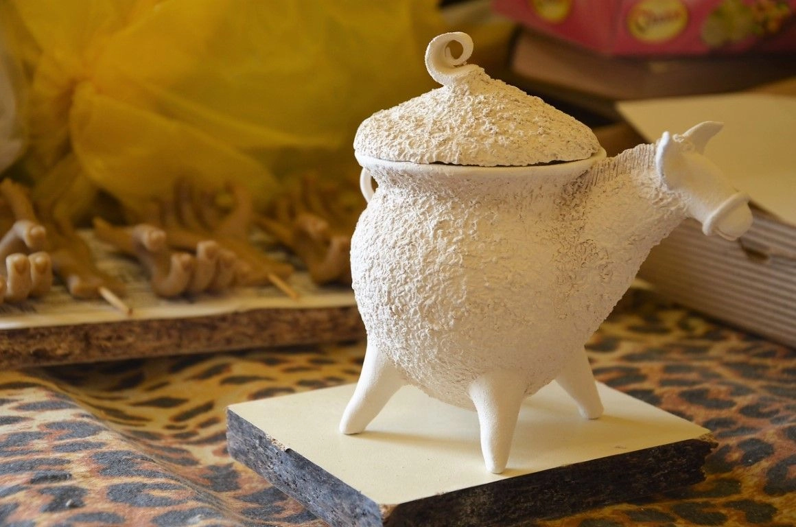 Парень меня тоже узнал и захотел сделать подарок. Он изготавливает вот такие сахарницы и как раз заканчивал работу над одной из них. Пока мы ходили по тюрьме, он все закончил и передал мне ее.