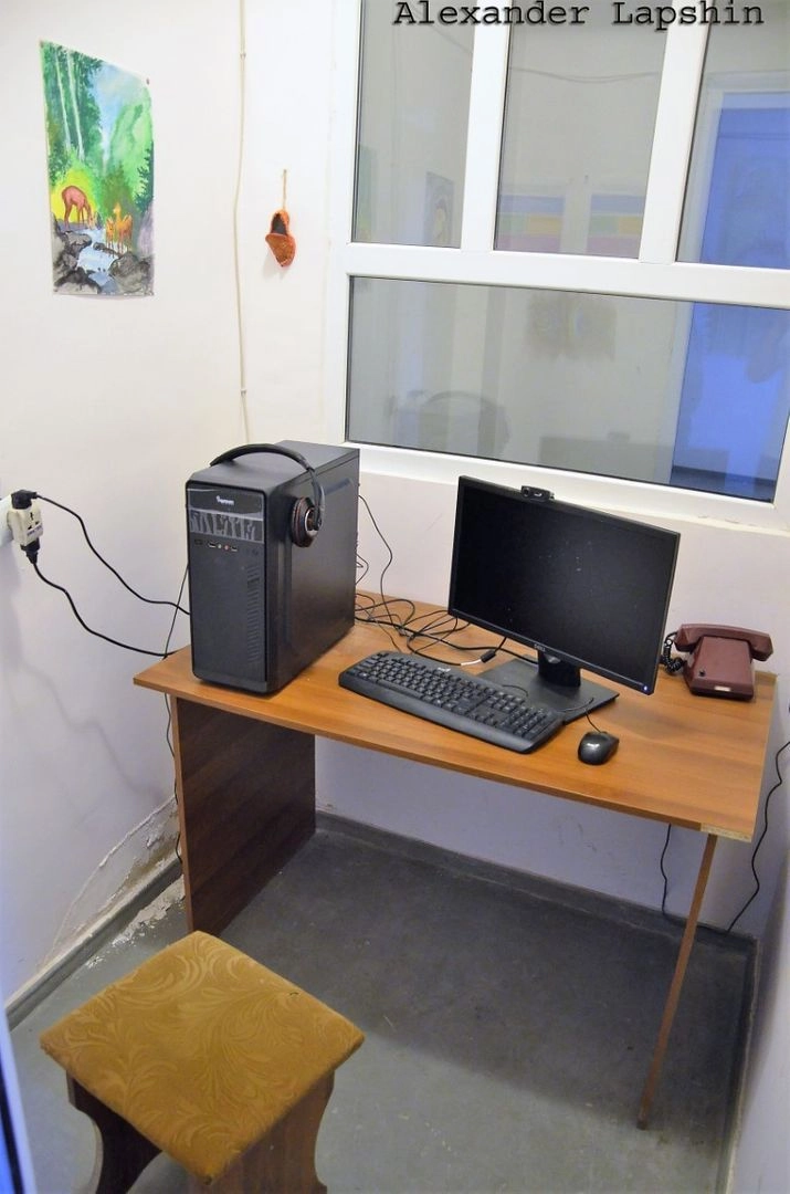В белорусской и азербайджанской тюрьмах (в особенности в СИЗО) со свиданиями все плохо. Только через стекло и говорите с близкими через трубку. Более того, чаще всего вас вообще лишают свиданий по выдуманным из пальца причинам. Например, в Белоруссии меня держали 2 месяца и за это время всего один раз позволили свидание через стекло. Звонить домой не разрешили ни разу. Даже в Азербайджане, известном своим беспределом, разрешали звонить раз в неделю 15 минут. Здесь же, в Армении, во-первых, можно звонить раз в неделю домой по скайпу вот в таких комнатках. Естественно, что, кроме скайпа, там ничего не работает, доступа к свободному интернету нет.