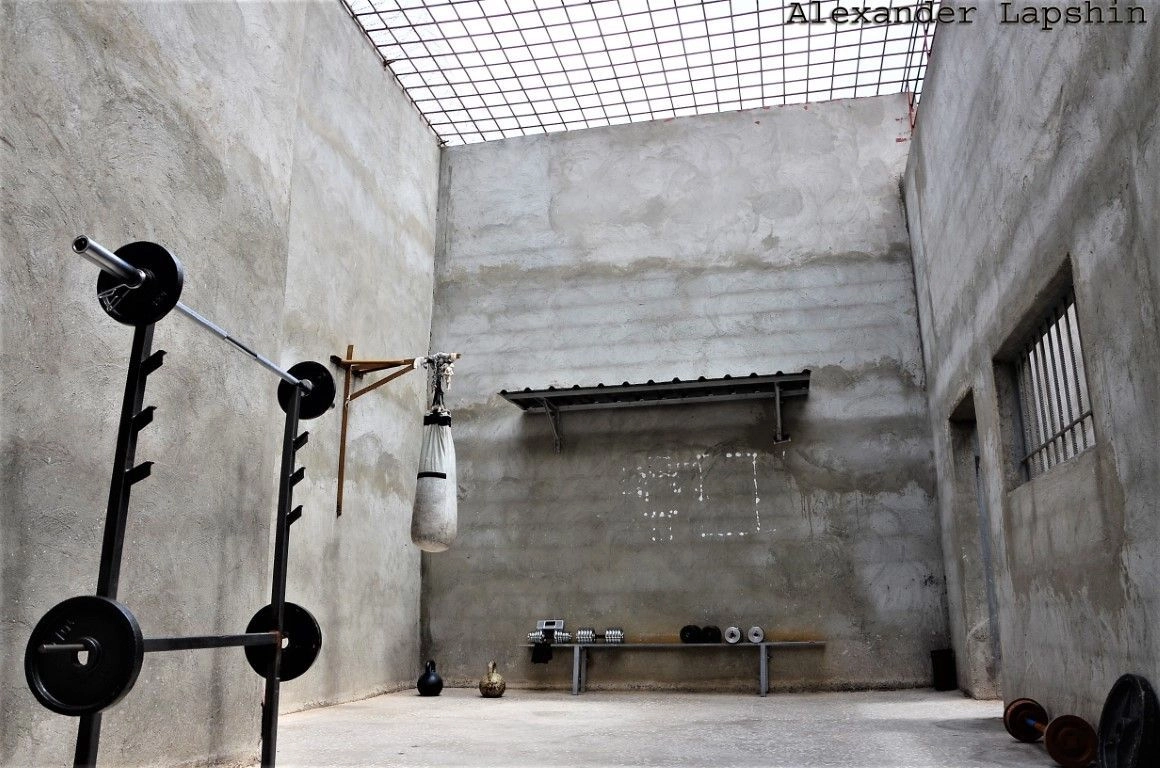 Насчет прогулок на свежем воздухе. В Армавирской тюрьме камерный тип содержания осужденных, поэтому вольно никто не гуляет по территории тюрьмы, это не привычная нам российская «зона» с бараками. Здесь прогулки в таких отсеках с решетками наверху. Зато можно заниматься спортом.