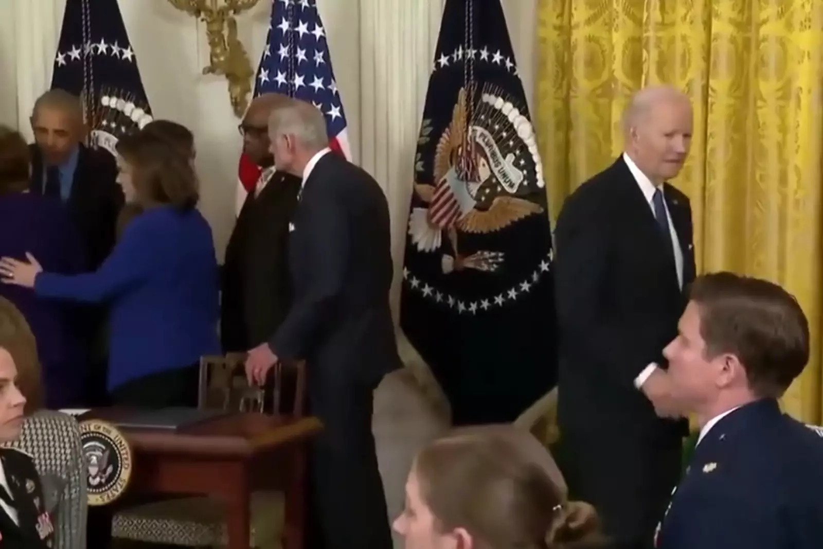 Обитатели соцсетей распространяют уморительное видео из Белого дома, на котором президент США Джо Байден оказался в полном одиночестве в ходе публичного мероприятия. Ничего не поделаешь, внимание гостей было приковано к экс-президенту Бараку Обаме.