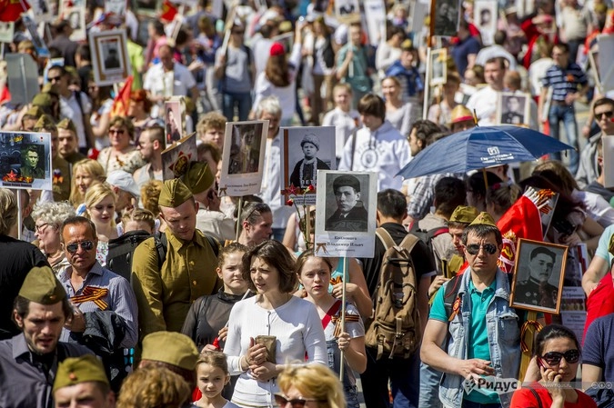 В «Бессмертном полку» маршируют представители всех национальностей Советского Союза: русские и евреи, армяне и украинцы, грузины и белорусы.