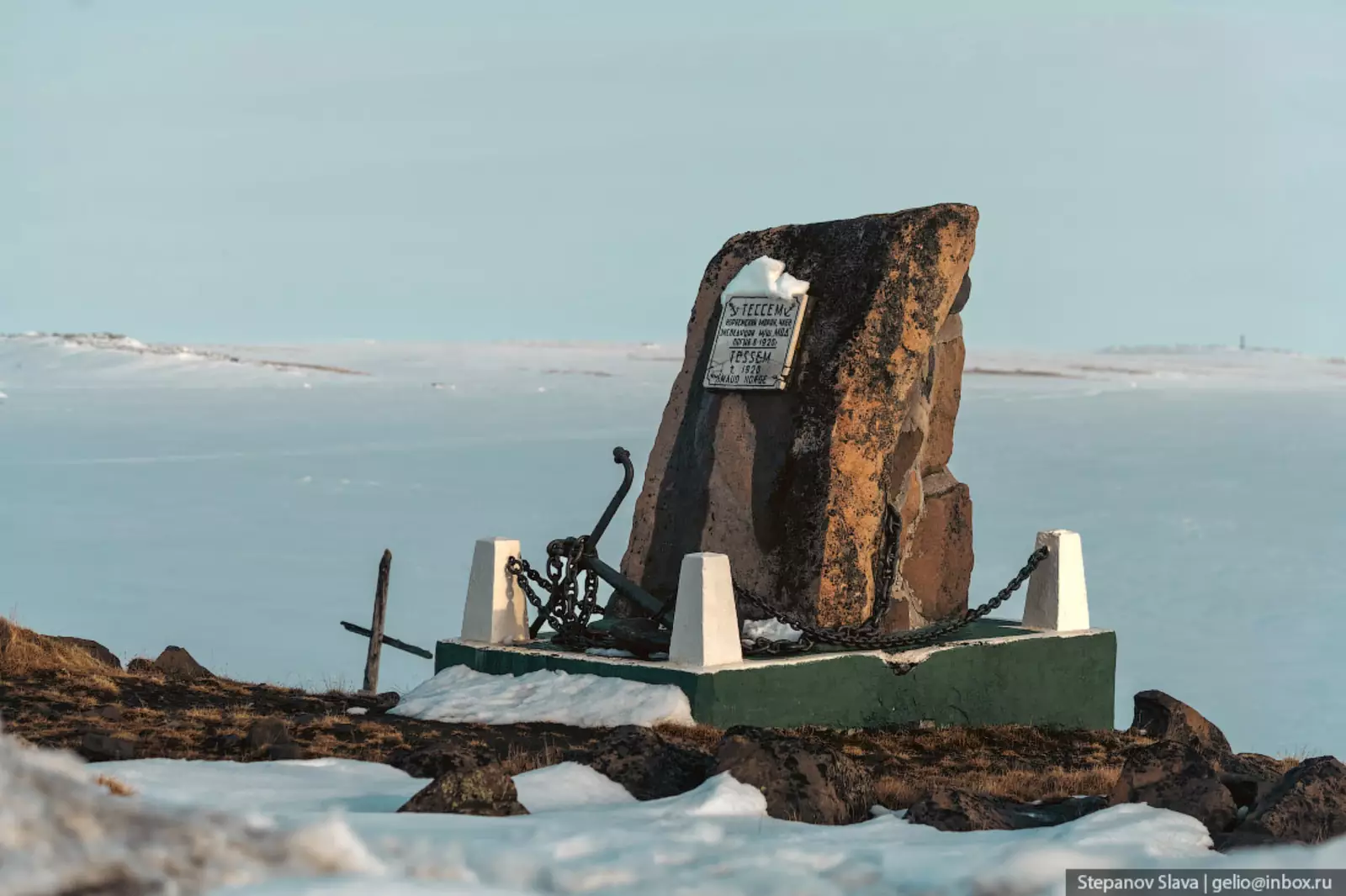 10. Памятник норвежскому моряку Тессему которого норвежский путешественник отправил с экспедиционной почтой и научными материалами на Диксон. Только через два года узнали, что моряк пропал — он прошел около 1000 км по тундре, но погиб всего в 2 км от радиостанции. Памятник возвели по инициативе полярников Диксона в 1958 году.