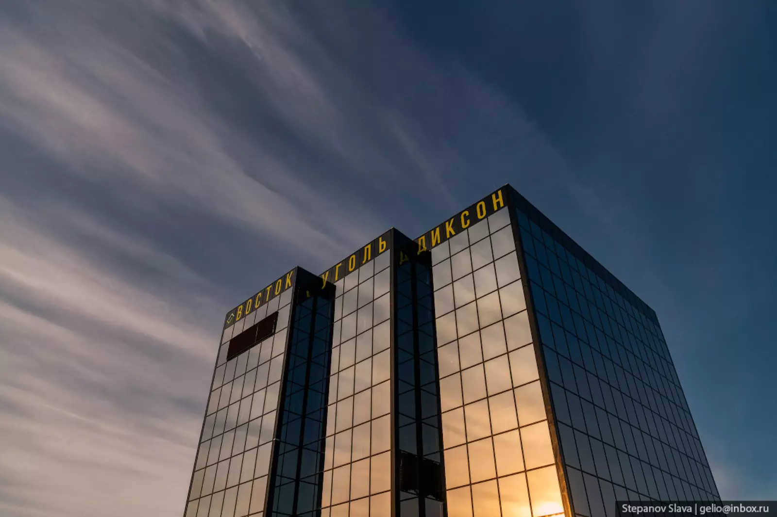 12. В 2015 году запустили масштабный проект по разработке угольных месторождений неподалёку от Диксона. Планировали в 2024 году построить в порту новый угольный терминал, организовать транспортировку. В то время говорили, что Диксон станет «мировой столицей Арктики». Именно тогда в городе появилось офисное здание, по местным меркам — небоскрёб. Судьба проекта сейчас непонятна — у предприятия сменился владелец и работы заморозили.