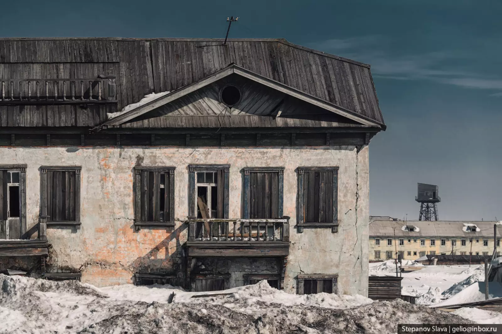 28. В Диксоне много заброшенных домов. Ветер выбивает заколоченные двери — и снег покрывает здание не только снаружи, но и изнутри.