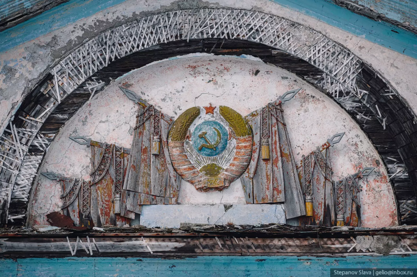 47. На фронтоне — традиционный для советской архитектуры герб. Наверняка в этом клубе проходили все местные мероприятия.