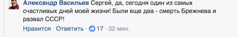 Запись о смерти «узурпатора» — как и оптимистичные комментарии под ней — на данный момент удалена со страницы телеведущего. Сам Васильев в интервью «Комсомолке» заявил, что его страницу взломали: