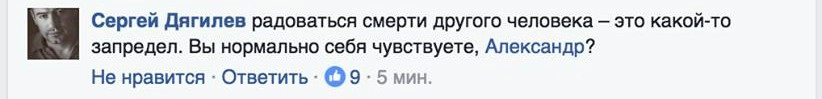 «Знакомая Васильева из Латвии, некая Людмила Орлиня бросила клич заступиться за обиженного „историка моды“, — продолжает Дягилев. — Она была уверена, что Васильев к оскорблениям покойного непричастен — это, мол, все интернет-провокаторы взломали его страницу и написали подобную гадость. Многие пользователи, в том числе и я, уличили его в обмане. Но русский и французский историк моды, коллекционер, декоратор интерьеров, театральный художник, автор книг и статей, лектор, телеведущий и почетный член Российской Академии художеств, тут же меня удалил из друзей, при этом, не забыл поставить лайки всем, кто его поддержал на страничке его подруженьки».