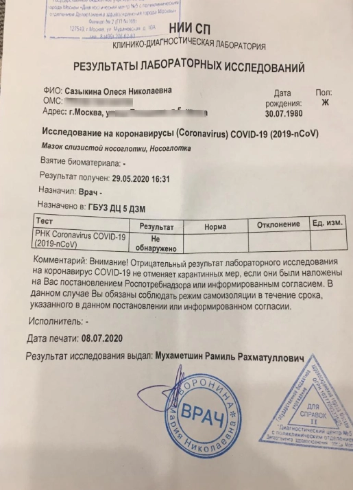В разгар эпидемии коронавируса Сазыкина периодически посещала аллерголога и ради этого установила приложение «Социальный мониторинг». Женщина рассказала «Ридусу», что строго соблюдала режим цифровых пропусков и полиция не предъявляла к ней претензий во время ее поездок по городу. К тому же медики не нашли у нее никаких признаков COVID-19.