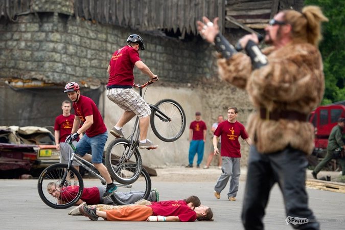 Выкрашенная в цвета российского флага «шестерка» «Жигулей» протаранивает хлипкую деревянную конструкцию, на которой, раскинув руки, стоит девушка. Раздается взрыв, вспыхивают языки пламени, автомобиль уносится прочь, а девушка аккуратно приземляется на ноги, одаривая ошеломленную публику сияющей улыбкой. Шоу каскадеров «Fire Angels Motors» в самом разгаре и самое интересное еще впереди.