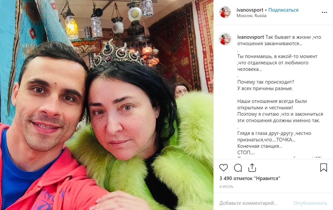 Однако затем произошел скандал: певица обнаружила на своем компьютере переписки бывшего мужа эротического содержания с новой избранницей, которые он вел еще в браке. Тот подал заявление в полицию о взломе своей почты и соцсетей, также заявил о распространении его переписки. Иванов отметил, что это произошло на фоне его развода с Лолитой. Однако сама певица в интервью «КП» сказала, что не взламывала чужие аккаунты, а просто увидела переписку экс-супруга на своем компьютере.