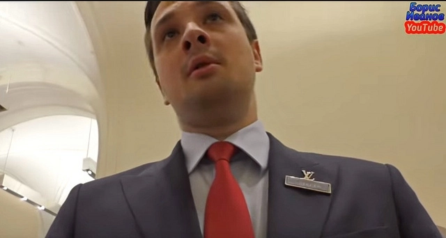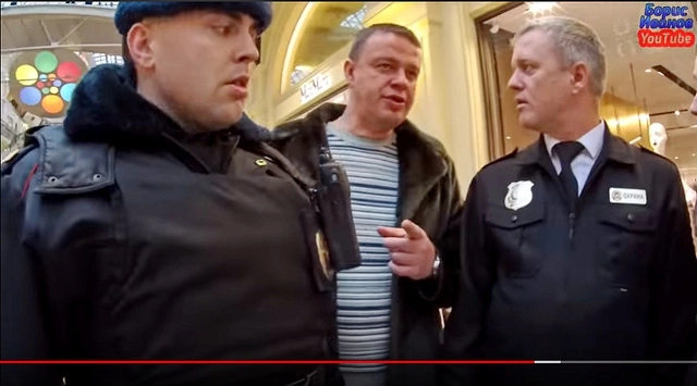 И вроде инцидент исчерпал себя, когда Борис стал выходить из помещения «Луи Вюиттона» (Louis Vuitton). Но как только он вышел в галерею, его нагнал охранник и ударил. Потом он попытался завладеть камерой, за что получил струю из перцового баллончика.
