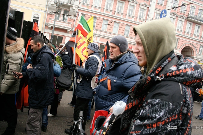 "Сегодняшняя акция в чем-то даже превзошла мои ожидания, - заявил "Ридусу" глава Российского Союза сельской молодежи Дмитрий Пекуровский. - Информация о ее проведении была распространена в сжатые сроки, но многие люди посчитали важным не оставаться в стороне и поддержать как наших соотечественников, так и украинский народ в целом. Наши студенты столичных аграрных вузов, активисты, приняли участие, а также было приятно видеть другие патриотические, общественные, молодежные организации. Мы помним, как было в великие времена, когда наши предки боролись с фашизмом, который сейчас развивается на Майдане. Поэтому мы должны защищать наши интересы и безопасность мирных людей"...