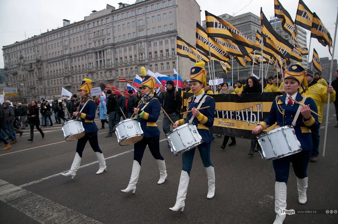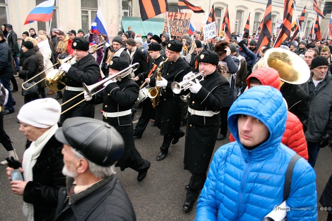 Шествие «Народный сход за братский народ» стартовало в 17:00 на Пушкинской площади в центре Москвы и завершилось на проспекте Сахарова.
