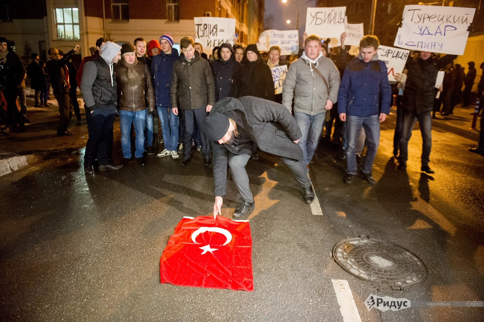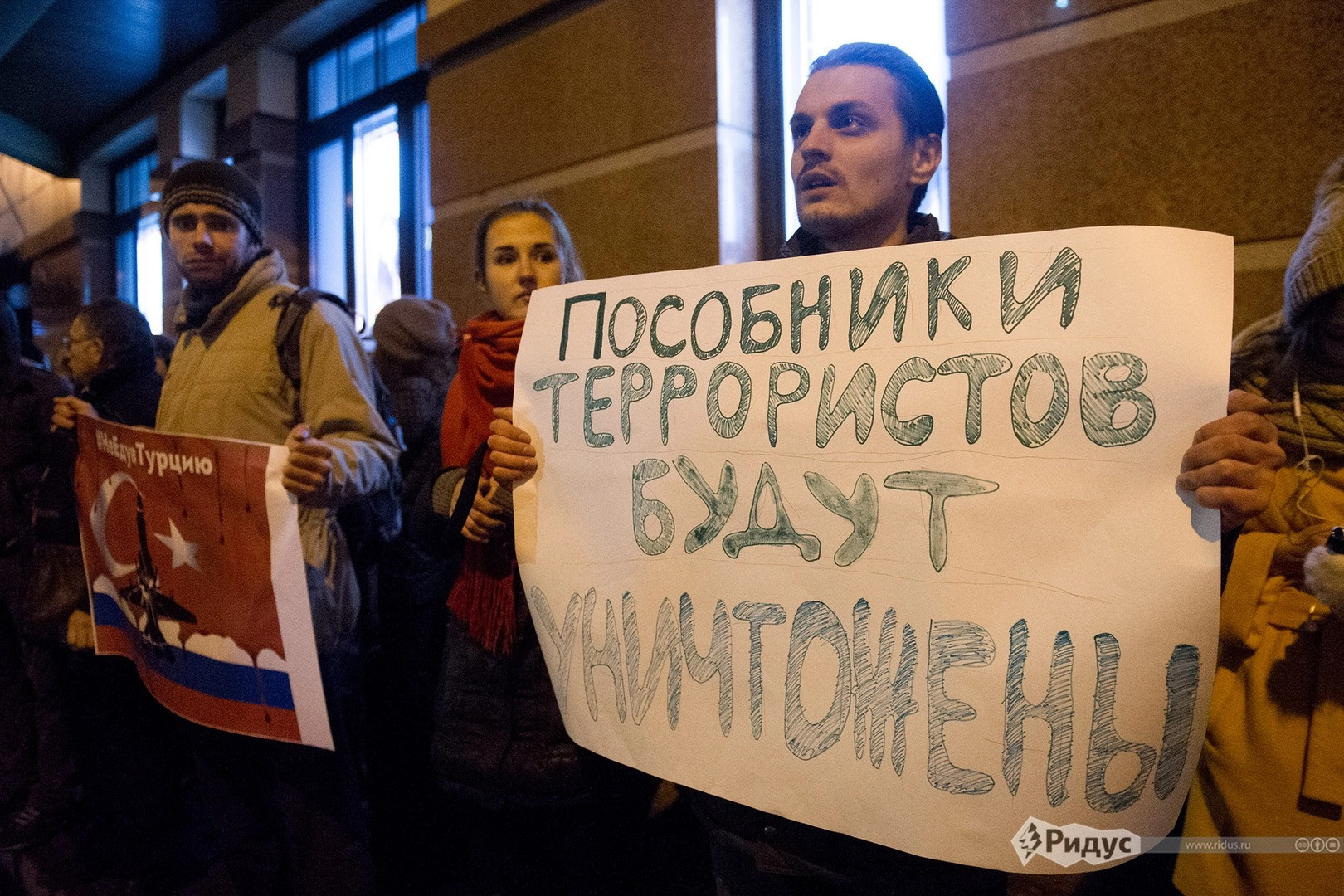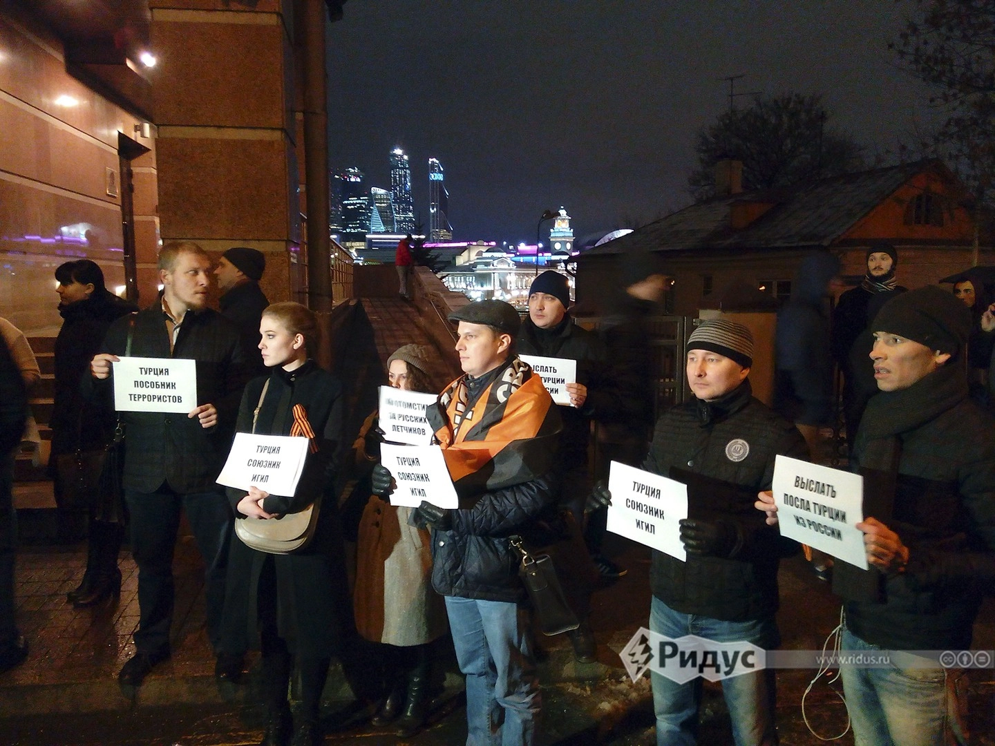 Ранее серию одиночных пикетов устроило Национально-освободительное движение. Активисты вышли к турецкому посольству, держа в руках транспаранты «Турцию к ответу!», «Возмездие неизбежно!», «Сбитые летчики уничтожали террористов, чтобы не гибли ваши и наши мирные граждане!», «Турция, ты за или против ИГИЛ?».
